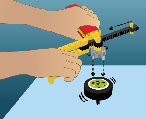 学習のねらい:大小の歯車の違いを比較する 歯車のかみ合わせを考えて、回転する乗り物を組み立てる