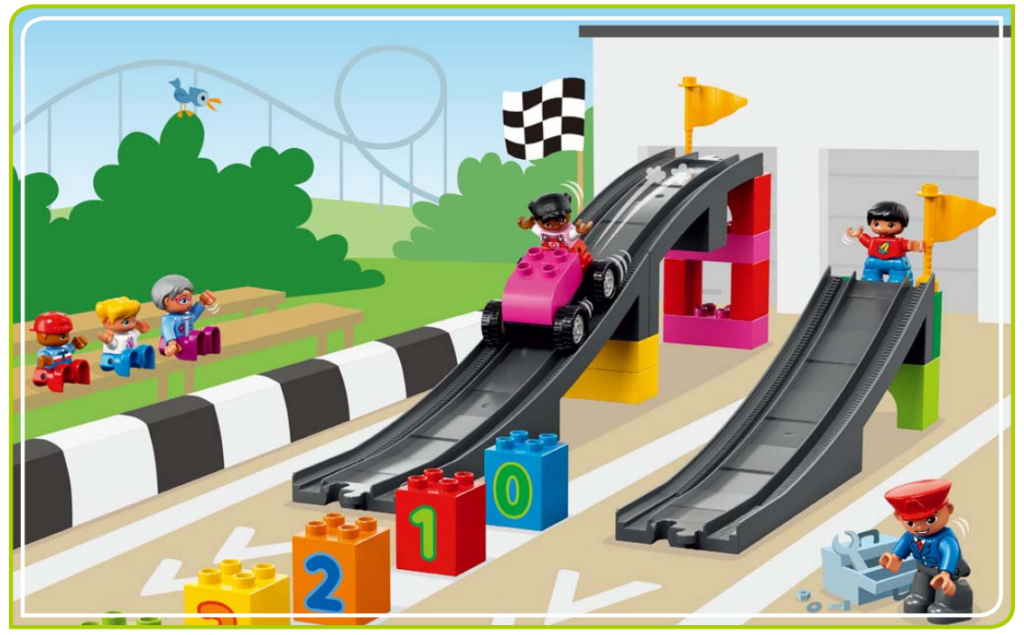 | 4C | できるだけ遠くまで車を走らせるために、スロープを組みなおして試しました。 |