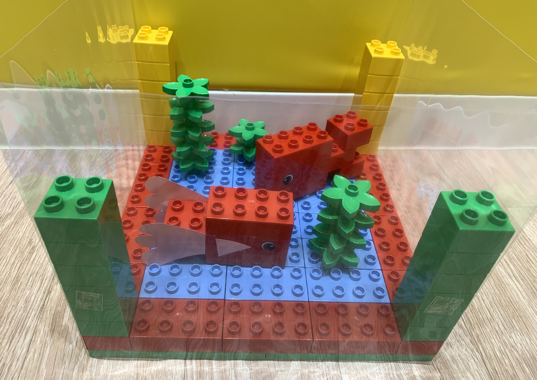 | 2C | ブロックや折り紙などの工作素材を使って、それぞれ大きさの違う金魚を組み立てます。 |