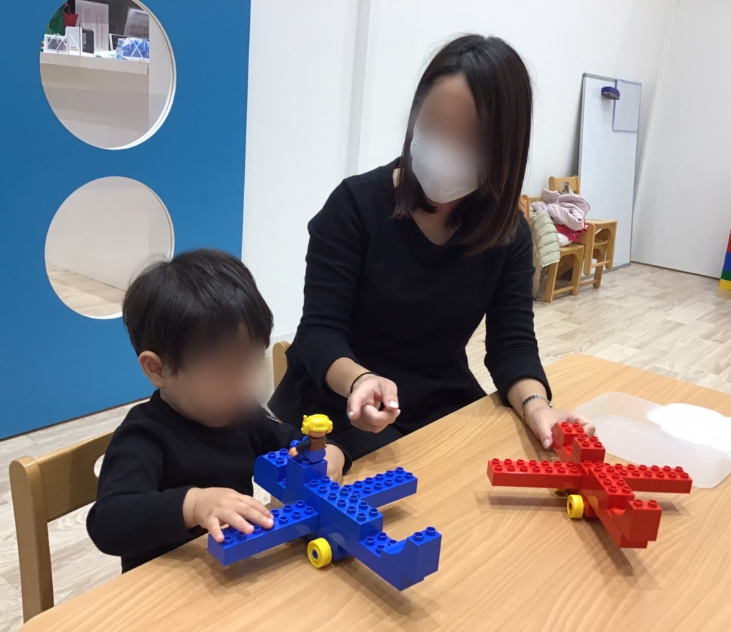 学習のねらい:色を意識して一色で飛行機を組み立てる 空の環境を再現し飛行機を飛ばして楽しむ